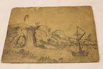 ID: EPPD1Early Pencil/Pen Drawing has inscription on back that is hard to decipher measures 18cm x 13cm