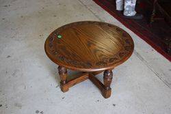 ID: WH701Round Carved Oak Coffee Table 47cm tall 77cm diameter