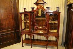 Stunning Art Nouveau Finely Inlaid Sideboard-Parlour Cabinet with Oval Central Mirror Flanked with 2 Single Door Display Sections. Wonderful Example. 152cm wide x 200cm high x 47cm deep
