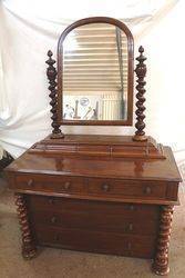ID: ANT1006A Wonderful Quality Victorian Mahogany 5 Drawer Dressing Chest with Exceptional Barley Twist Columns. 163cm high, 75cm high to top of bench, x 110cm wide x 50cm deep.