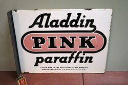 Vintage Aladdin Pink Paraffin Double Sided Enamel Sign. ( Irish SHELL Ltd ) Great Gloss & Colour. 46cm wide x 36cm high.