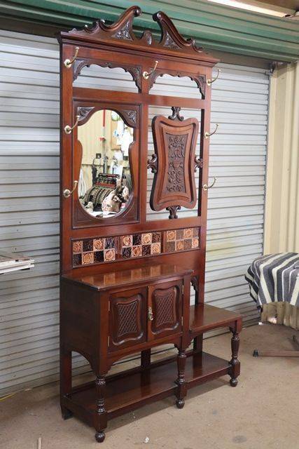 Lovely Quality Late Victorian Antique Walnut Mirror Back Hallstand with 2 Door Cupboard and Incorporating a Hall Seat.. Wonderful Example. 115cm wide x 225cm tall x 37cm deep