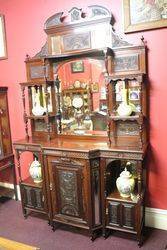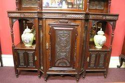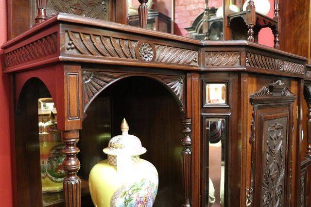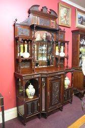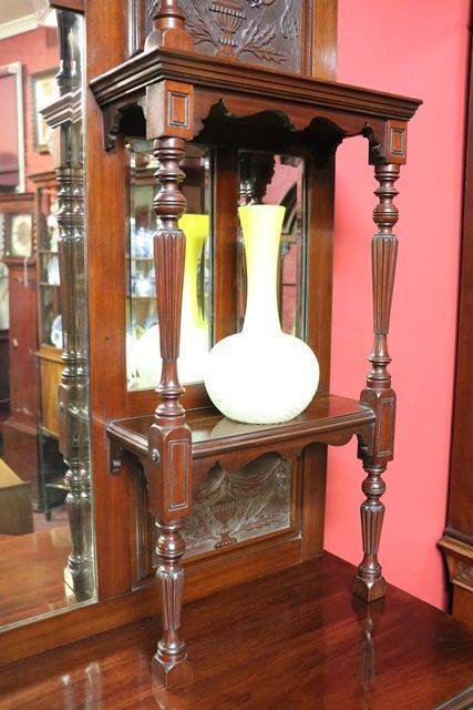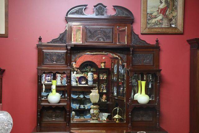 Antique FRY'S Chocolate Shop Counter Dispensing Cabinet. With Milk Glass Top Carved Pediment. 66cm wide x 91cm high x 41cm deep.