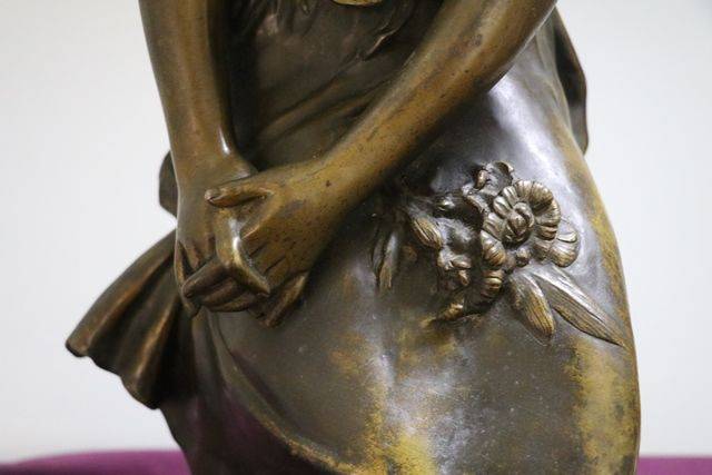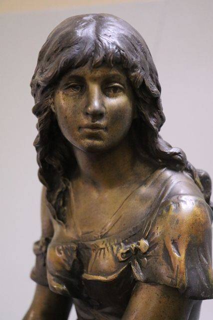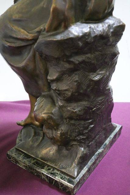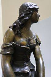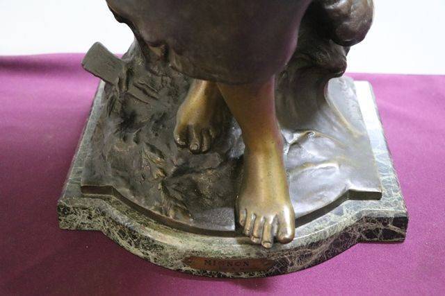 A Genuine "Mignon" Signed by A. Moreau Spelter Figure On Marble Base.