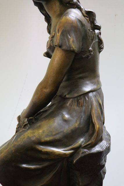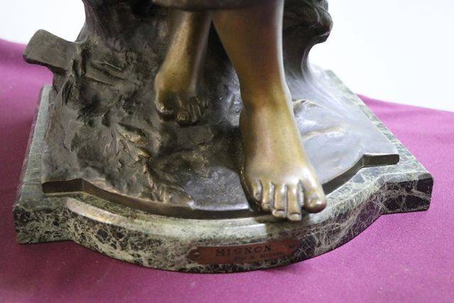 "Mignon" ( Small-Cute-Pretty ) Signed by A. Moreau .. Large Spelter Figure On Marble Base. Lovely Example.