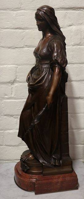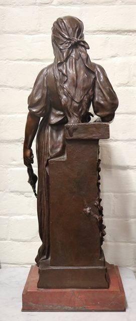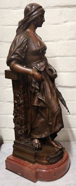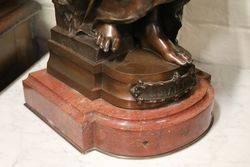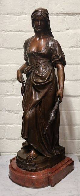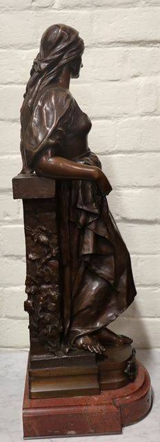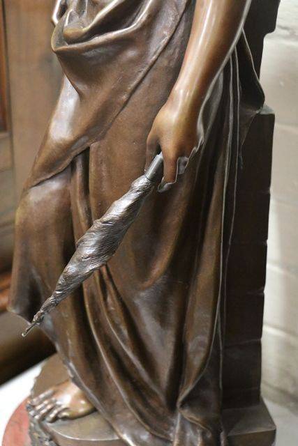 Stunning French Antique Female Bronze on a Rouge Marble Base, Signed Marioton. Eugene Marionton, Born Paris April 7 1857 Died 1933..