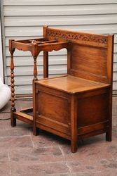 ID: ANT409Quality English Oak 2 Door Tri Shaped Display Cabinet.. C1900-10 190cm high x 100cm wide x 40cm deep.