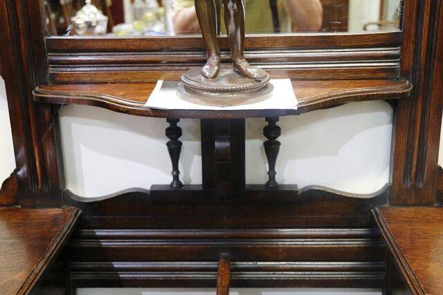 A Good Quality Large Antique Victorian Solid Oak Hallstand. With a Mirror Back & 2 Drawer Top and Original Metal Drip Tray. English 1890-1900.