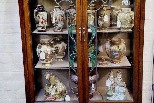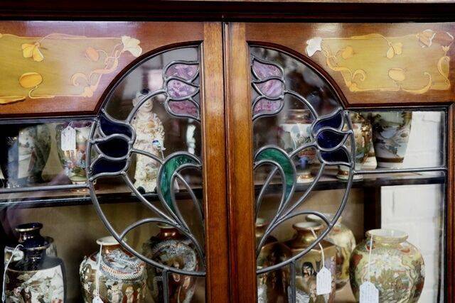 Antique Oak Shop Display Cabinet. SALE PRICE $990.00. 135cm wide x 38cm deep x 220cm high,