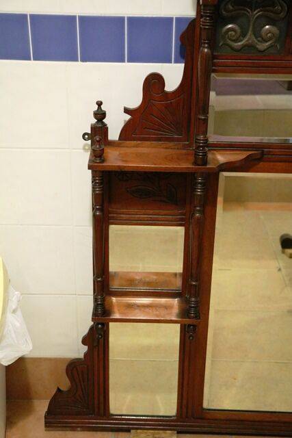 Art Nouveau 6 Panel Bevel Glass Walnut Over mantle Mirror, # #