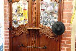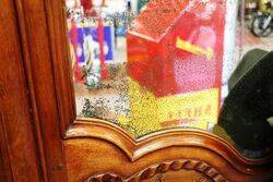 Art Nouveau 6 Panel Bevel Glass Carved Walnut Over Mantle Mirror Unusual with the 3 Pressed Metal Art Nouveau Tiles and the Carved Swan Neck Pediment. 120cm wide x 135cm high..