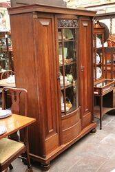 Antique French Oak 3 Door Bookcase with a Glazed Bow Front Centre Door, Avery attractive and functional piece of furniture. 135cm wide x 190cm high x 45cm deep