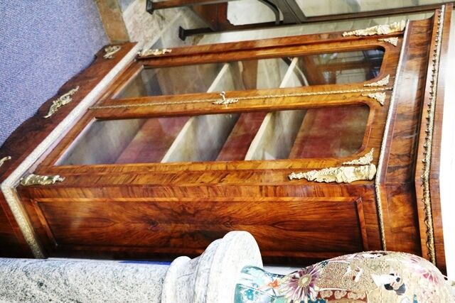 Late C19th 3 Tier Etagere With Pierced Brass Gallery and Mounts, Marquetry Panels C1890 French 57 cm wide x 79 cm high x 35 cm deep