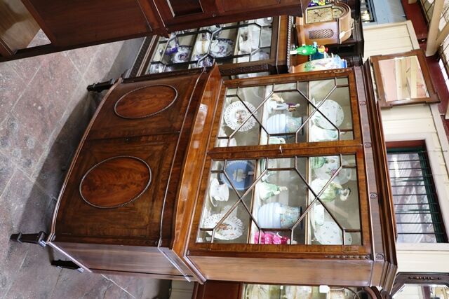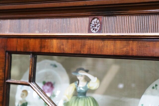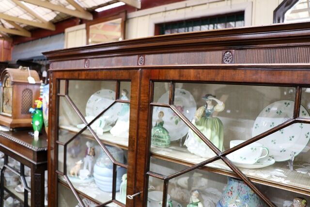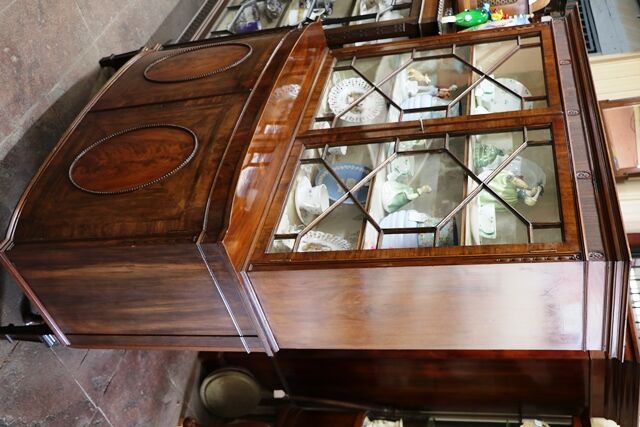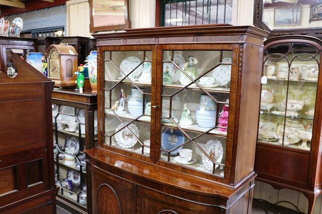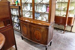 A Lovely Quality Early C20th Two Door Astragal Glazed Mahogany Bookcase-Cabinet, Base with Flame Mahogany Framed Oval Panel Doors.