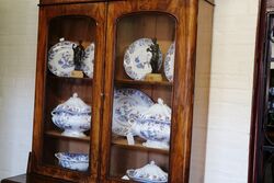 Edwardian Inlaid Breakfront Display Cabinet Dated 1904....190cm H x 140cm W x 45cm D.