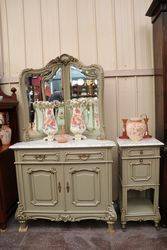 C20th French Provincial Painted Corner Dresser with White Marble Top & Matching Bedside Cabinet Large Part:97cm wide x 173cm high x 58cm deep Small Part :38cm square x 83cm high