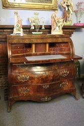 A Rare Antique Dutch Bombé Cylinder Bureau in Flame Mahogany. C1775 118 cm high x 130 cm wide x 85 cm deep (fully open)