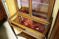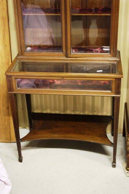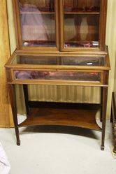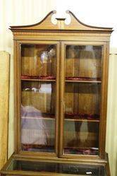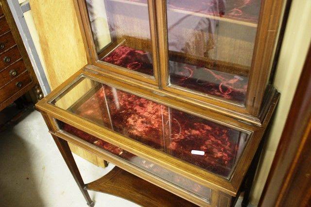 Antique Edwardian Walnut Single Door Display Cabinet with Serpentine Glass Sides. English C1900-10. 120cm wide x 180cm high x 43cm deep