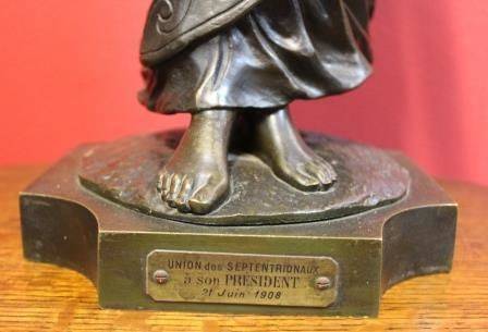 Stunning French Art Deco green spelter figure C1925 32 cm high, 64 cm wide, 18 cm deep