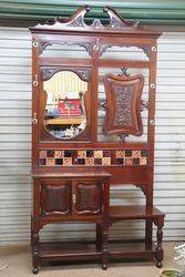 Lovely Quality Late Victorian Antique Walnut Mirror Back Hallstand with 2 Door Cupboard and Incorporating a Hall Seat.. Wonderful Example. 115cm wide x 225cm tall x 37cm deep