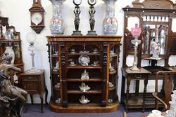 ID: ANT1501Stunning Burr Walnut Credenza-Display Cabinet, C1850.Rare Example with Curved Glass Ends and Glazed Top Centre Door. Remarkably in Excellent Original Condition. 148cm wide x 152cm high x 40cm deep