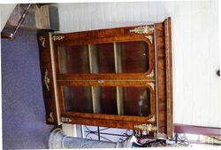 ID: ANT1488Stunning Mid Victorian Burr Walnut 2 Door Pier Cabinet. Adorned with Quality Gilt Mounts, A lovely original example and unusual in this size. 108cm wide x 32cm deep x144cm high.