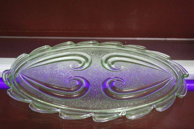 ID: GL1633Art Deco 3-Piece Schweig, Muller & Co frosted pink glass 'Cherubs' Centrepiece Bowl and Stand set on decorative black glass plinth. The bowl has a small chips to the base of the foot. but otherwise the set has only normal manufacturing fla