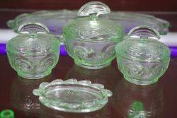 Art Deco 3-Piece Schweig, Muller & Co frosted pink glass 'Cherubs'