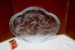 Art Deco SOWERBY Blue Clear Glass Butterfly Trinket Tray. In nice order.