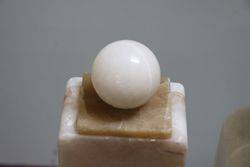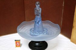 Art Deco Frosted Blue Glass Stump Lady Float Bowl on a Quality Black Glass Stand.
