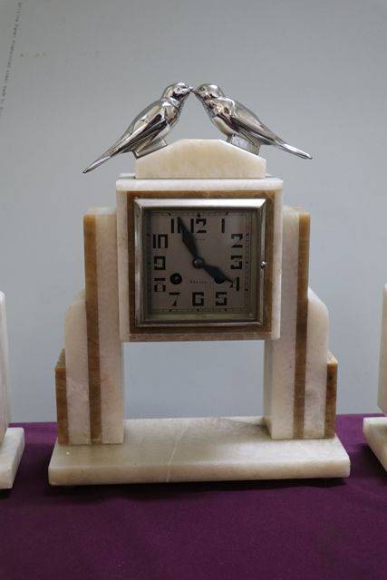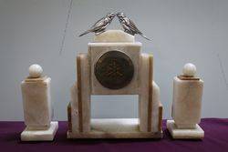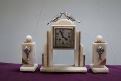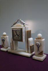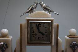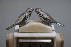 Art Deco 3 Piece blue glass Libochovice 'Penguin' Float Bowl set. Penguin figure with integral frog has small chips to the base rim of the frog caused while manufacturing grinding the base. C 1930's.