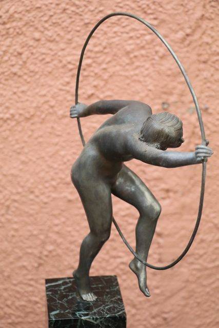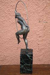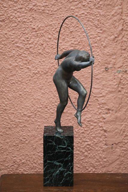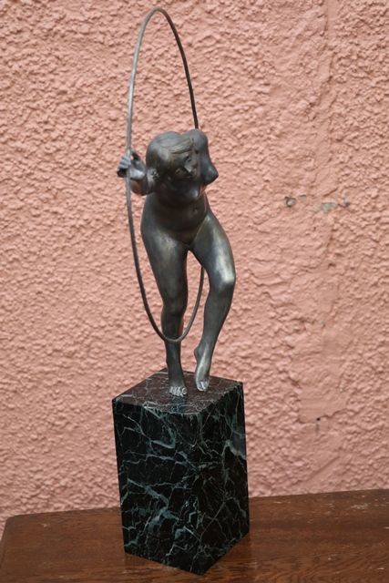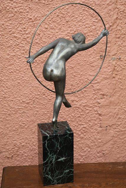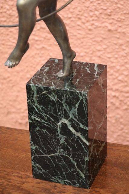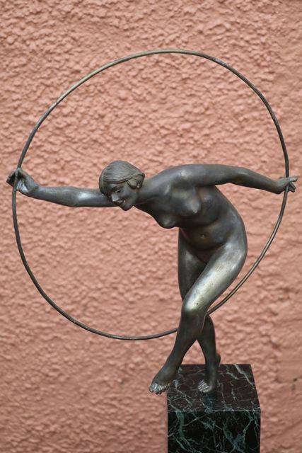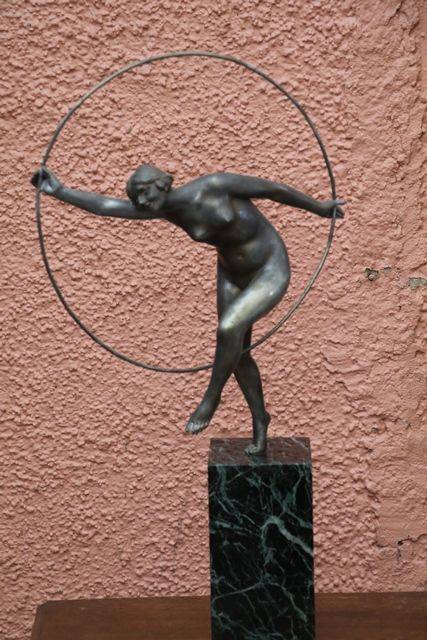 Art Deco 3Piece Amber Glass Lucretia Float Bowl. Minor Nibble to elbow and Chip to base of figure.