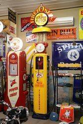 Early Siam Clock Face Manual Petrol Pump.Restored in Golden Fleece Livery and come with a Golden Fleece Crested Illuminated Canteen.