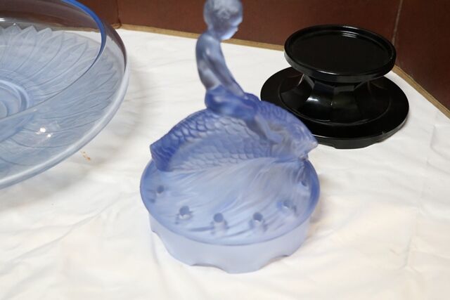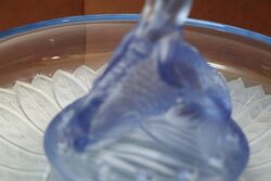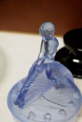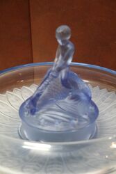 Art Deco 3-Piece frosted blue glass Float Bowl Boy on Fish.#