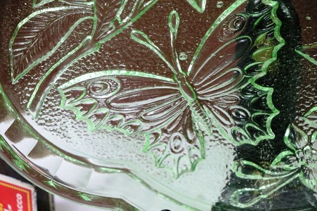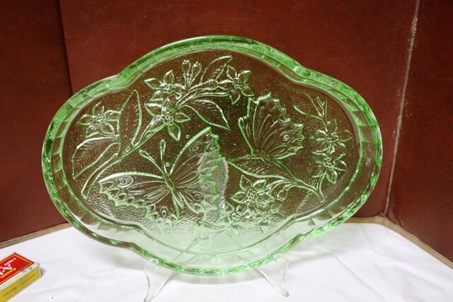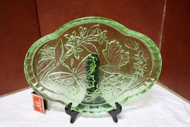 ID: GL1656AArt Deco Green Glass Flying Fish Bowl Only.