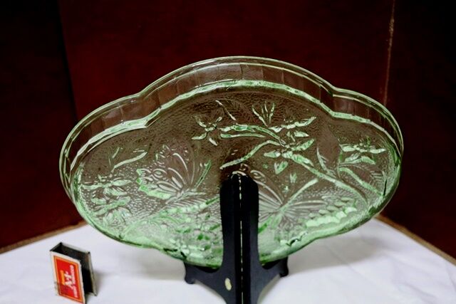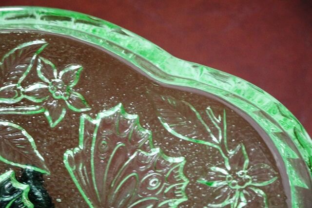 Art Deco Green Glass Flying Fish Bowl Only. #