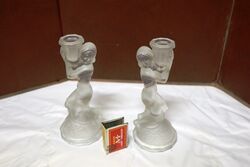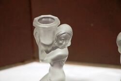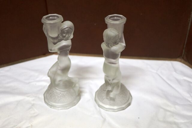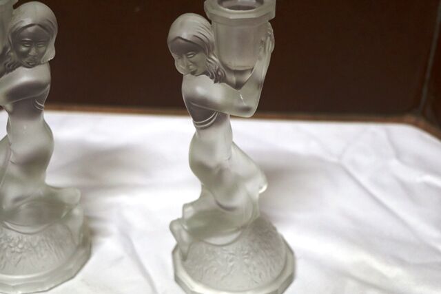 Art Deco Walther & Sohne Frosted Pair of Kneeling Maidens Candlesticks #