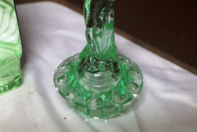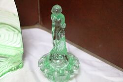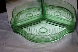 Art Deco J A Jobling 'Ice Cube' Pressed Glass 3 Handle Bowl with Large Frog. Pattern Number 2077. 1930's.