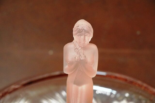 Art Deco Blue Glass Crinoline Lady Boudoir Lamp & Shade.
