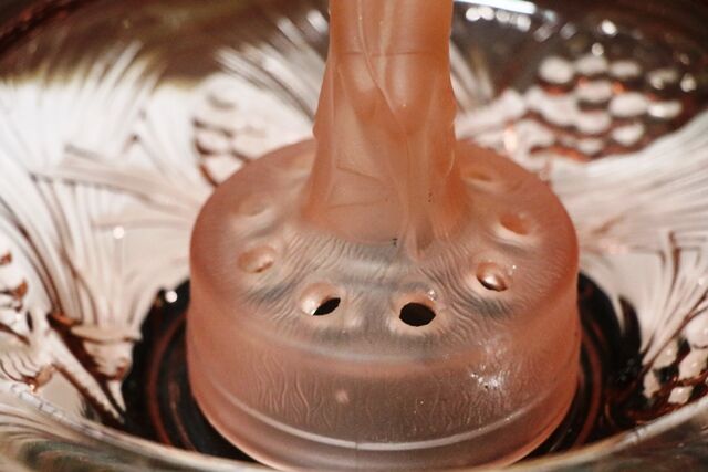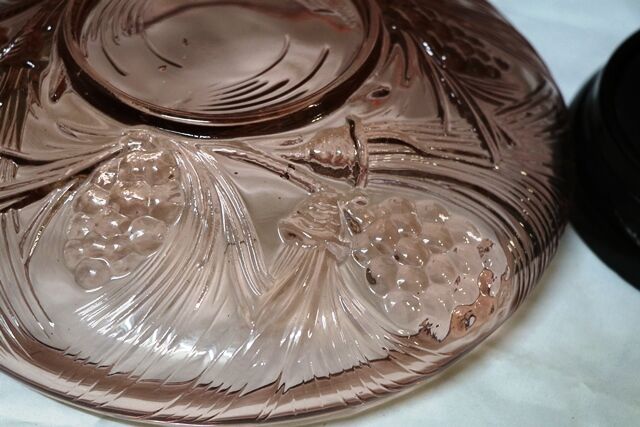 Art Deco Walther &Sohne Pink Glass Table Lamp with Flame Shade the has Matching Pink Highlights.