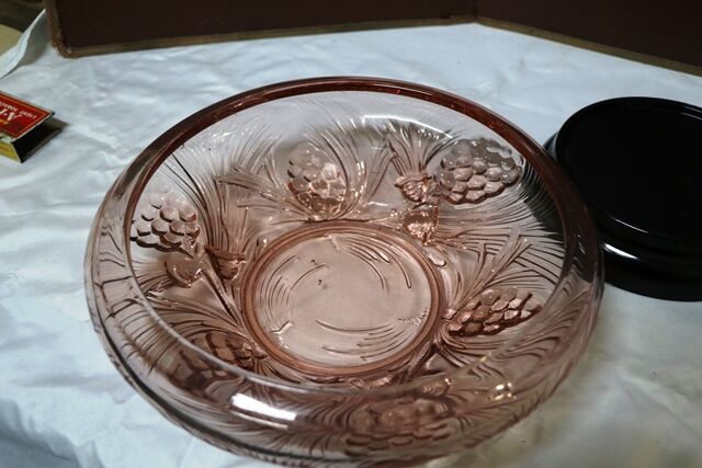7 pc Green Depression Glass Trinket Set