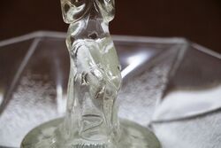 Art Deco 3-Piece Schweig, Muller & Co frosted pink glass 'Cherubs' Centrepiece Bowl and Stand set on decorative black glass plinth. The bowl has a small chips to the base of the foot. but otherwise the set has only normal manufacturing fla