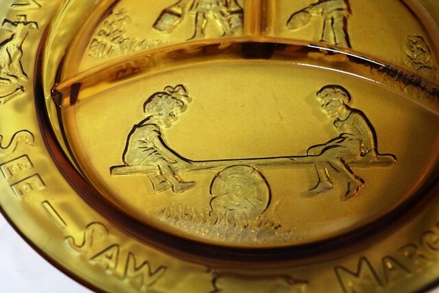 Art Deco 3 Piece Amber Glass Stump Lady Float Bowl. Some small nibbles to base of Figure.