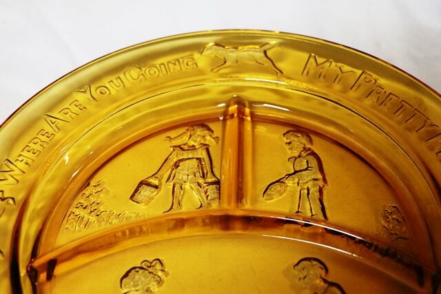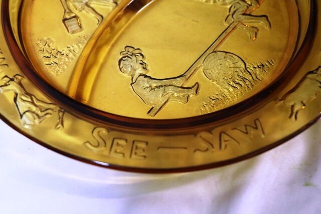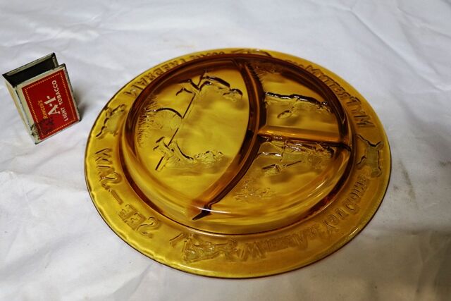 Art Deco 2 Piece Amber Glass September Morn Float Bowl. a nibble on the bottom rim of bowl.