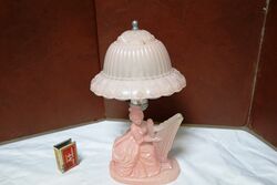Art Deco Pink Glass Lady Playing Harp Boudoir Lamp. Shade has a minor chip near edge.