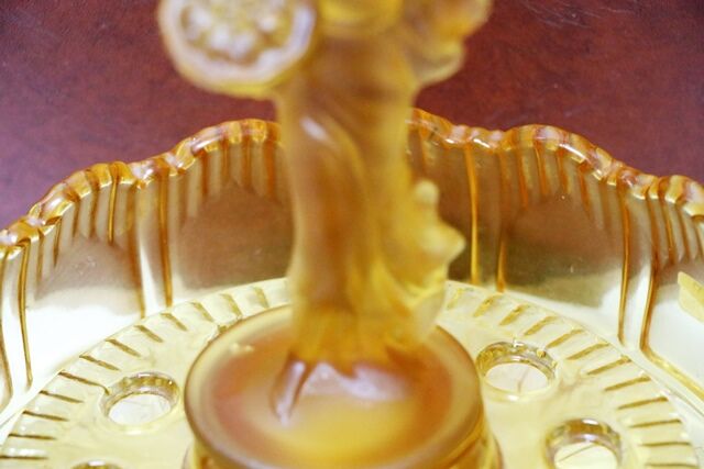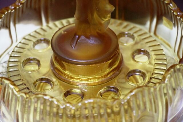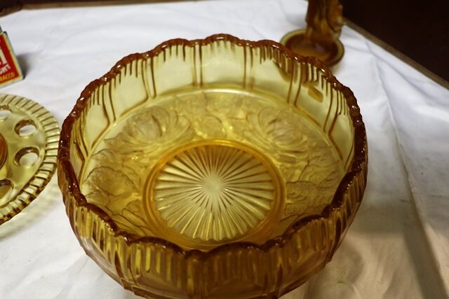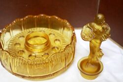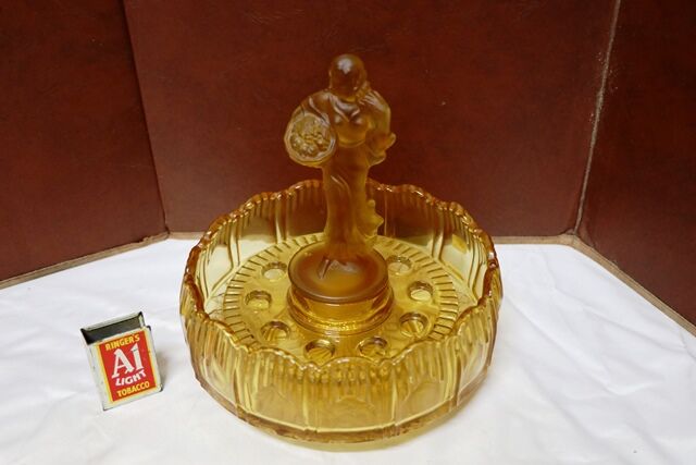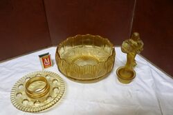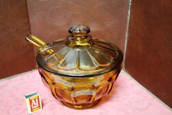 Art Deco Davidson Amber Glass Punch Bowl & Ladle. Retaining its Original Lid. 15cm high x 23cm dia.