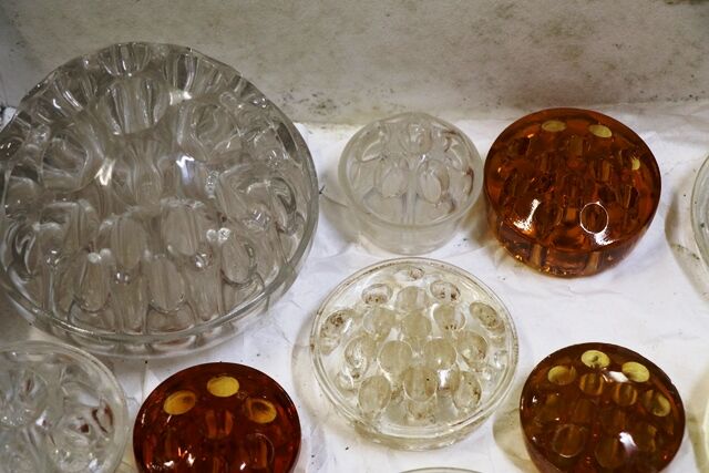 ID: GL931Art Deco Pair of Amber Glass Shell Bowls. Lovely quality.