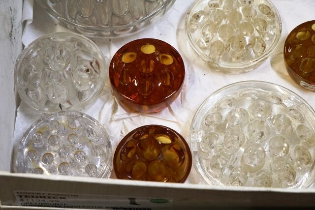 Art Deco Pair of Amber Glass Shell Bowls. #