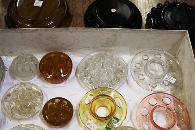 ID: GL1768Art Deco Frosted Pink 3piece September Morn Float Bowl. Two large chips to Frog.