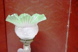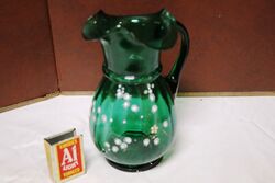 Lovely Medium Size Victorian Green Glass Jug with White Enamel Flowers.